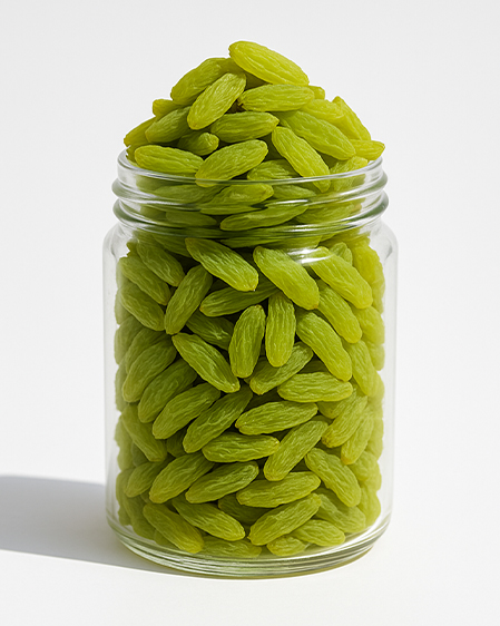 Our premium Green Raisins Kashmiri are sourced from the pristine valleys of Kashmir, where cool climates and fertile soil produce grapes with exceptional sweetness, soft texture, and natural green hue. Carefully harvested and traditionally shade-dried, these raisins retain their fresh appearance, delicate flavor, and superior nutritional value. Known for their vibrant color and plump quality, Kashmiri green raisins are highly regarded in premium dried fruit selections.