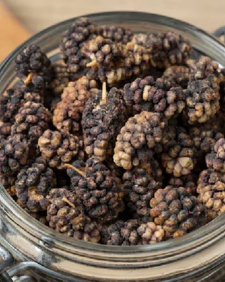 Dry black mulberries are valued for their bold fruity taste, pleasant chew, and impressive nutritional profile. Rich in antioxidants, dietary fiber, vitamins, and essential minerals, they are ideal for healthy snacking and widely used in desserts, bakery items, breakfast bowls, herbal blends, and traditional recipes. Their intense flavor adds depth to both sweet and savory dishes.